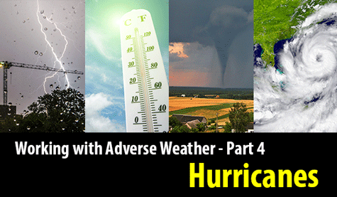 As with all the types of weather conditions, you must start with a plan. The best ones are developed BEFORE there is even a storm on the way. The good news is that with hurricanes and tropical storms, there are usually several days to prepare both a work site and personnel’s homes. Plans may be staged with time frames, such as general preparedness tasks at the beginning of the season (getting emergency supplies on site) and 72, 48, 24, and 12 hour checklists to secure the site when a storm actually threatens.