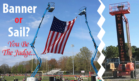 We love seeing our country’s flag flown at sporting events, advertisers want us to see their messages on banners, workers want to be comfortable in the sun. When it comes to hanging something from your aerial/scissor lifts or adding attachments for comfort, the answer is, just DON’T DO IT!
