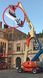 In a third scenario, an aerial lift is rented to use for lighting support on a photo shoot. Lights are hung from the lift and work commences, then something goes wrong…a picture is worth a thousand words.