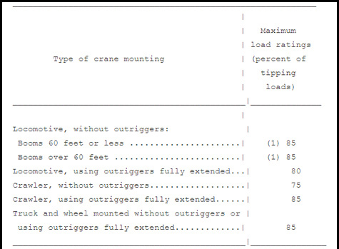 OSHA makes a couple of important statements about crane ratings which govern crane design and use. From 1910.180(c) and underlined by Crane Tech to indicate important points: